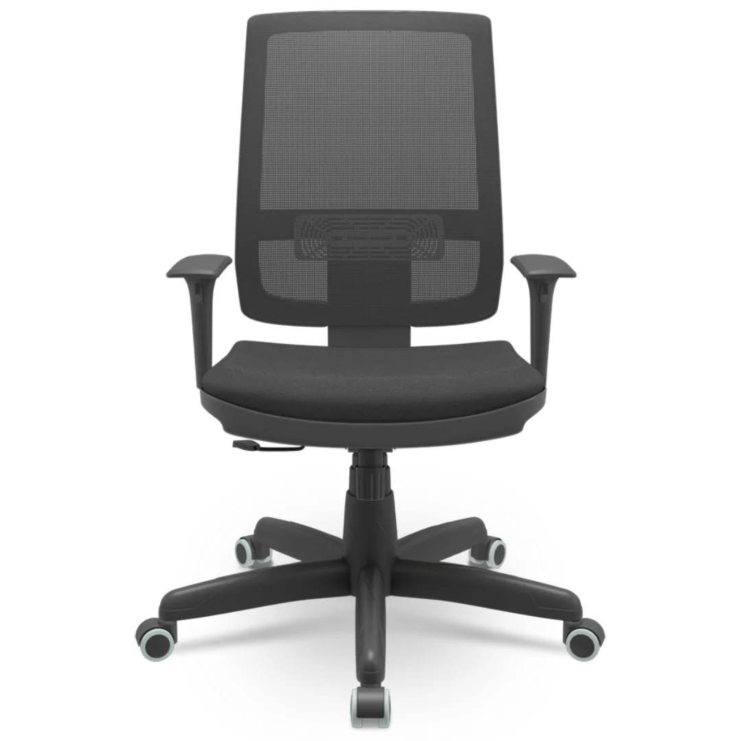 Encosto em Tela com apoio de lombar regulável – Assento produzido com madeira compensada 12 mm – Espuma injetada anatômica revestimento em Corino Ecológico liso – Mecanismo Relax proporcionador de inclinação do Encosto – Braços reguláveis com dupla fixação – Ajuste de altura através de pistão a gás com suporte de peso até 135kg – Base giratória em aço com rodízios especiais em poliuretano (não risca nem arranha piso/porcelanato) duplo giro.